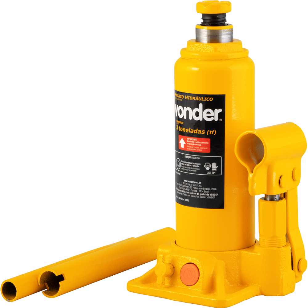 Indicado para elevação de veículos ou cargas de acordo com sua capacidade. Usar, armazenar e transportar somente na posição vertical para evitar vazamento de óleo. Quantidade total de óleo hidráulico: 110,0 ml. Atenção: o operador jamais deve ficar embaixo de um veículo elevado/suspenso por macaco hidráulico, sem o posicionamento de cavaletes de apoio. Risco iminente de acidente grave.